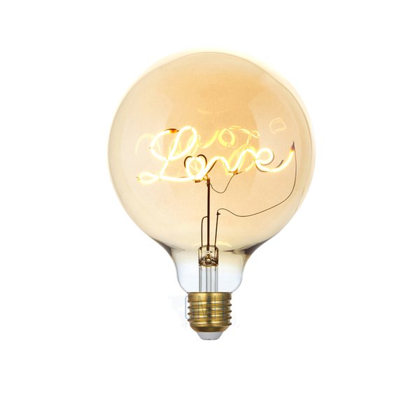 - Design exclusivo com filamento em formato da palavra "Love"