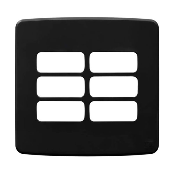 Com formato 4x4 e espaço para até 6 módulos, a placa possui acabamento preto fosco e linhas discretas, integrando-se perfeitamente ao ambiente. Compatível com suportes modulares e caixas padrão 4x4, oferece encaixe firme e instalação rápida.